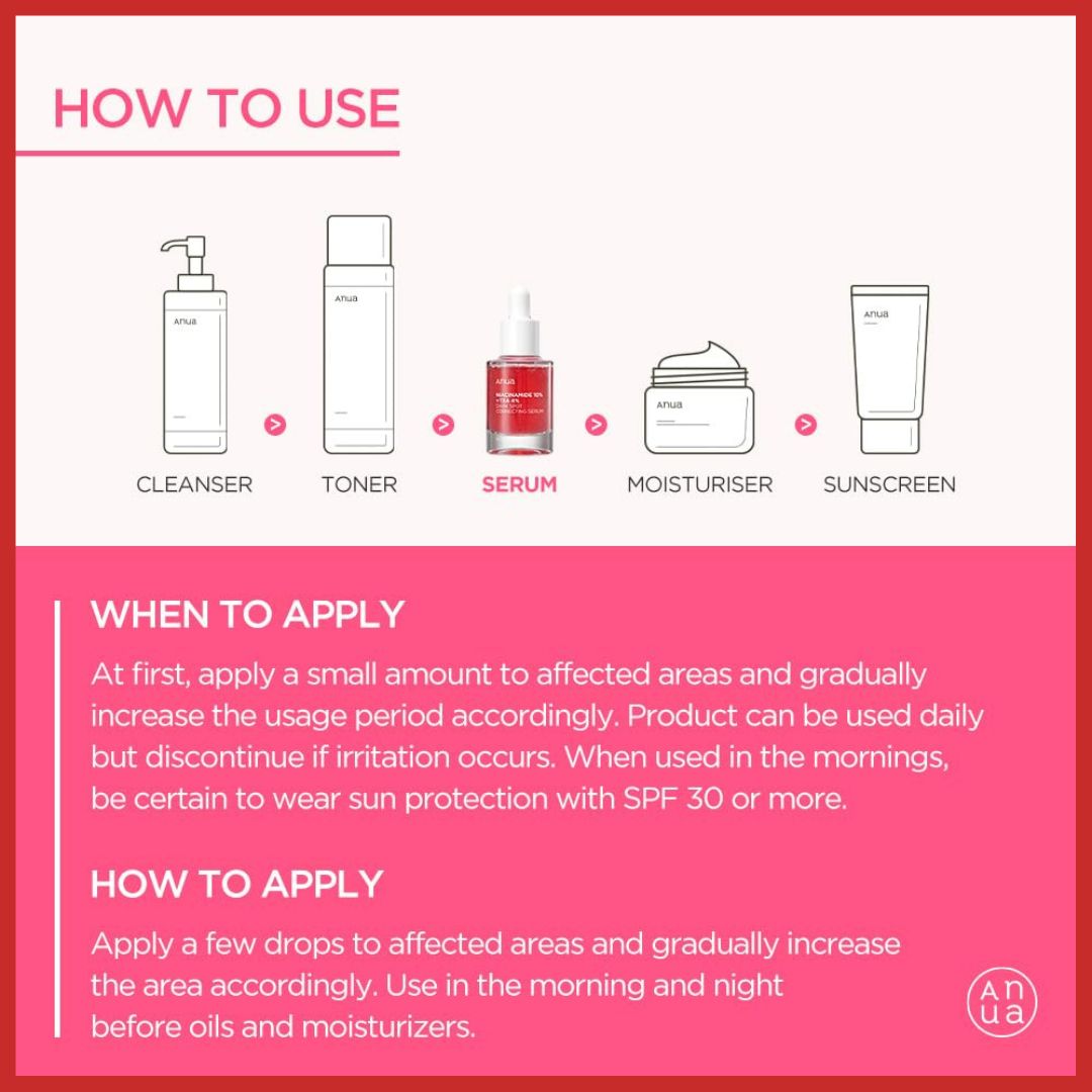 Apply a few drops to affected areas and gradually increase the usage period accordingly. Use in the morning and night before oils and moisturizers.
