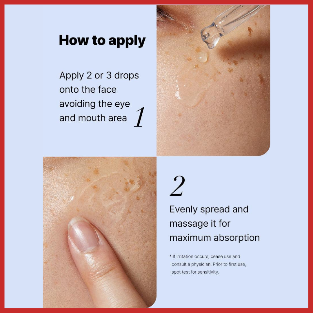 After cleansing, during the serum phase, apply a few drops to the skin. Use fingertips to gently massage and absorb the serum, starting from the center of the face working towards the edges.