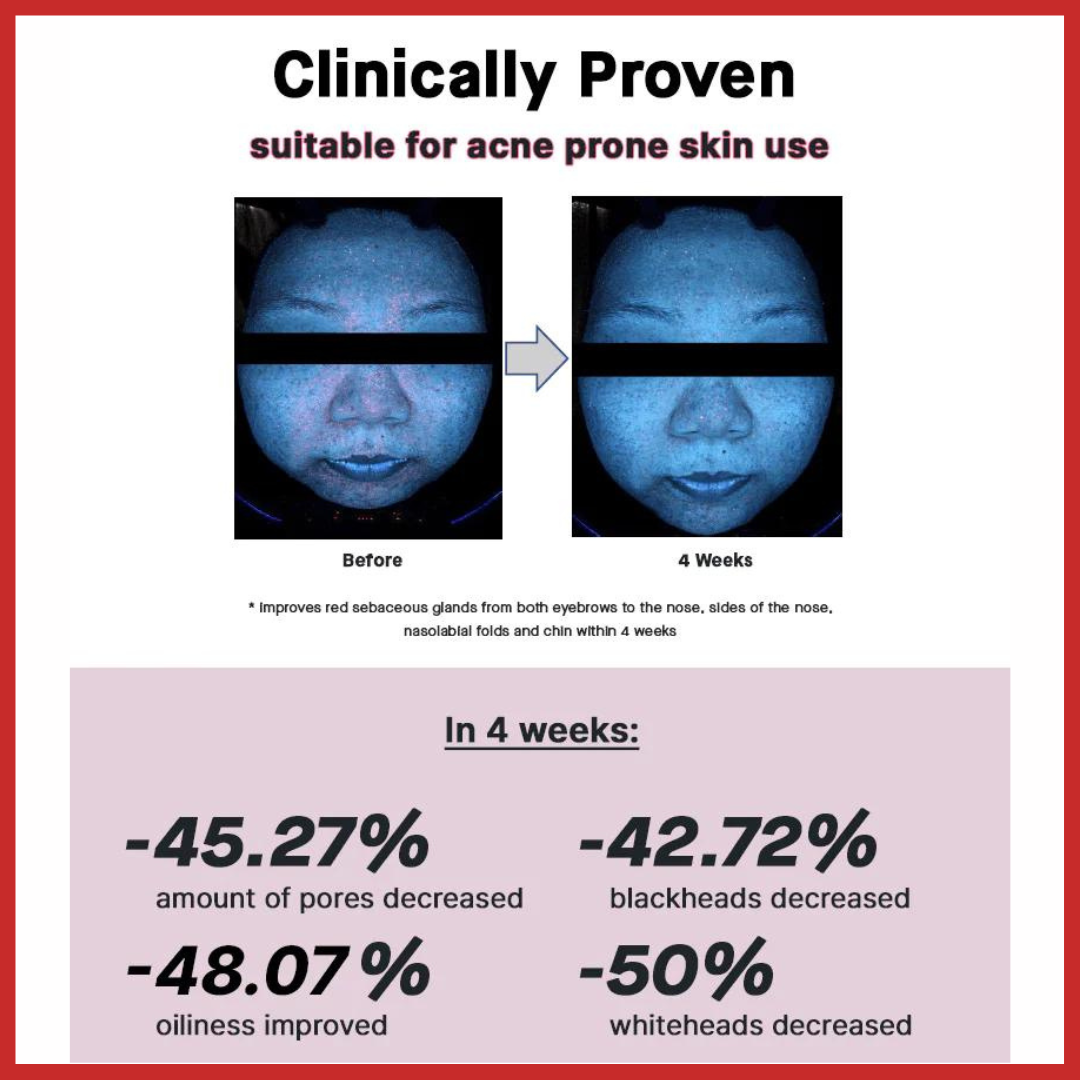 – 24.89% improvement of triple-complexion skin tone (redness)