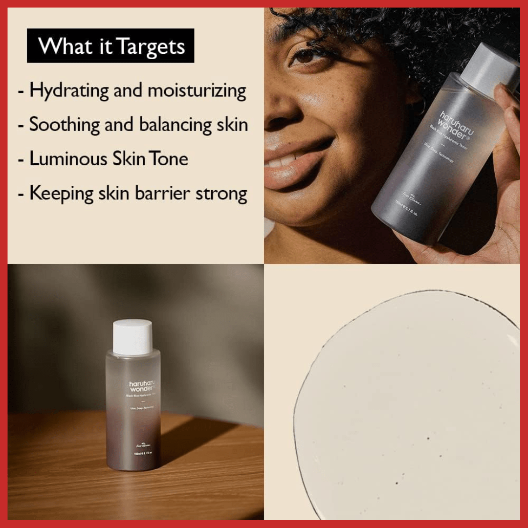 A powerful toner that repairs and firms up aging skin. Formulated with 95% naturally-derived ingredients, including 2,000ppm Korean black rice extract. Also infused with hyaluronic acid and beta-glucan to provide intense hydration while promoting skin cell regeneration, leaving a taut and plumped-up finish.