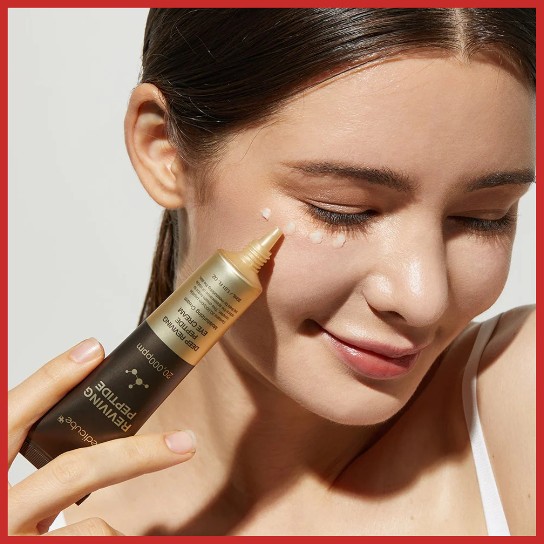 Medicube's Deep Lifting Peptide Eye cream provides your tender under-eye skin with intense moisture and targets saggy skin, under-eye puffiness & crow's feet!