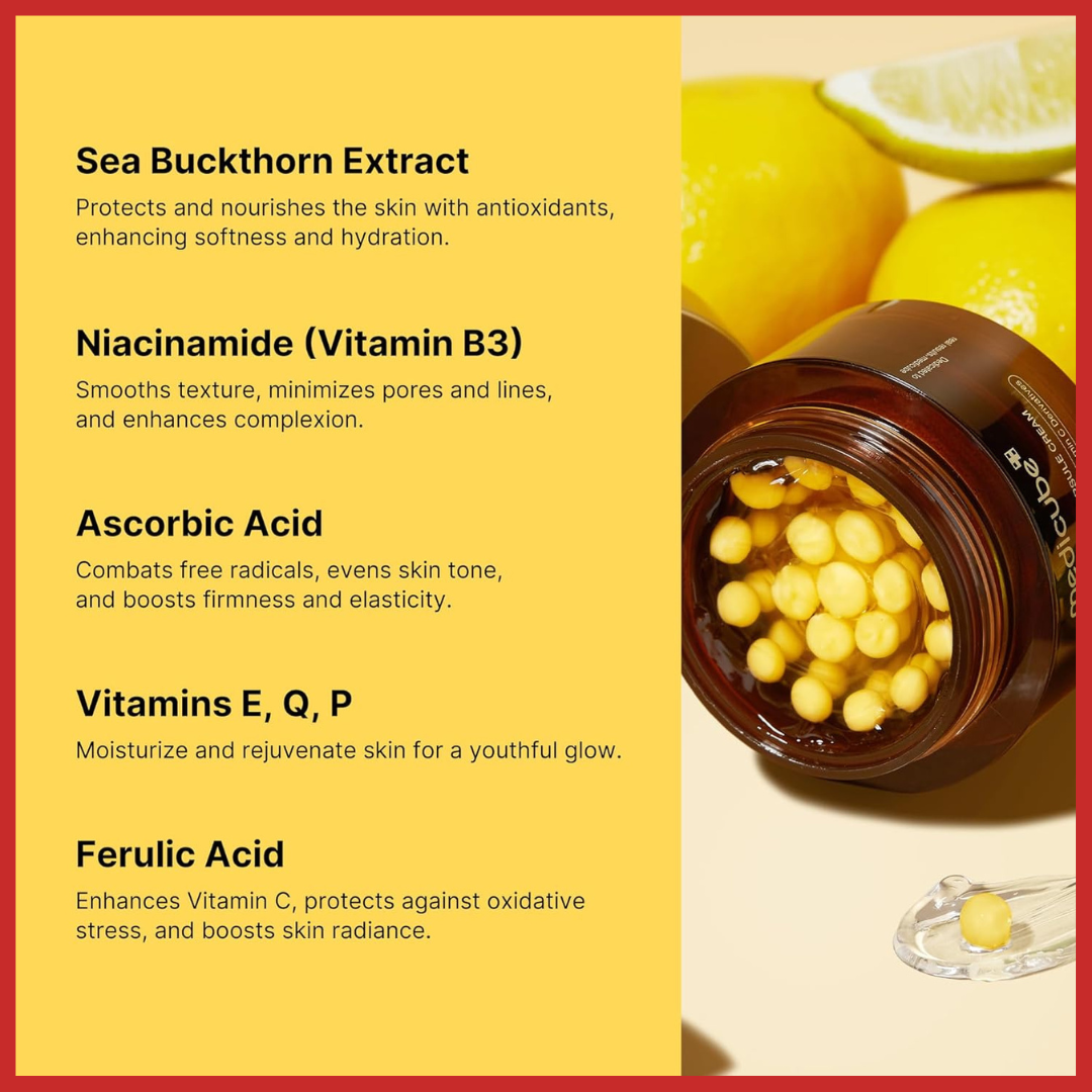 Vitamin C Capsule consists of Pure Vitamin C, Vitamin Tree Water, Niacinamide, and 5 Vitamin C Derivatives for the powerful effect of whitening on the skin. The Vitamin C capsules brighten dull skin tone and boost skin elasticity. This cream helps refine skin texture and improve skin elasticity to a radiant and glowy skin appearance.
