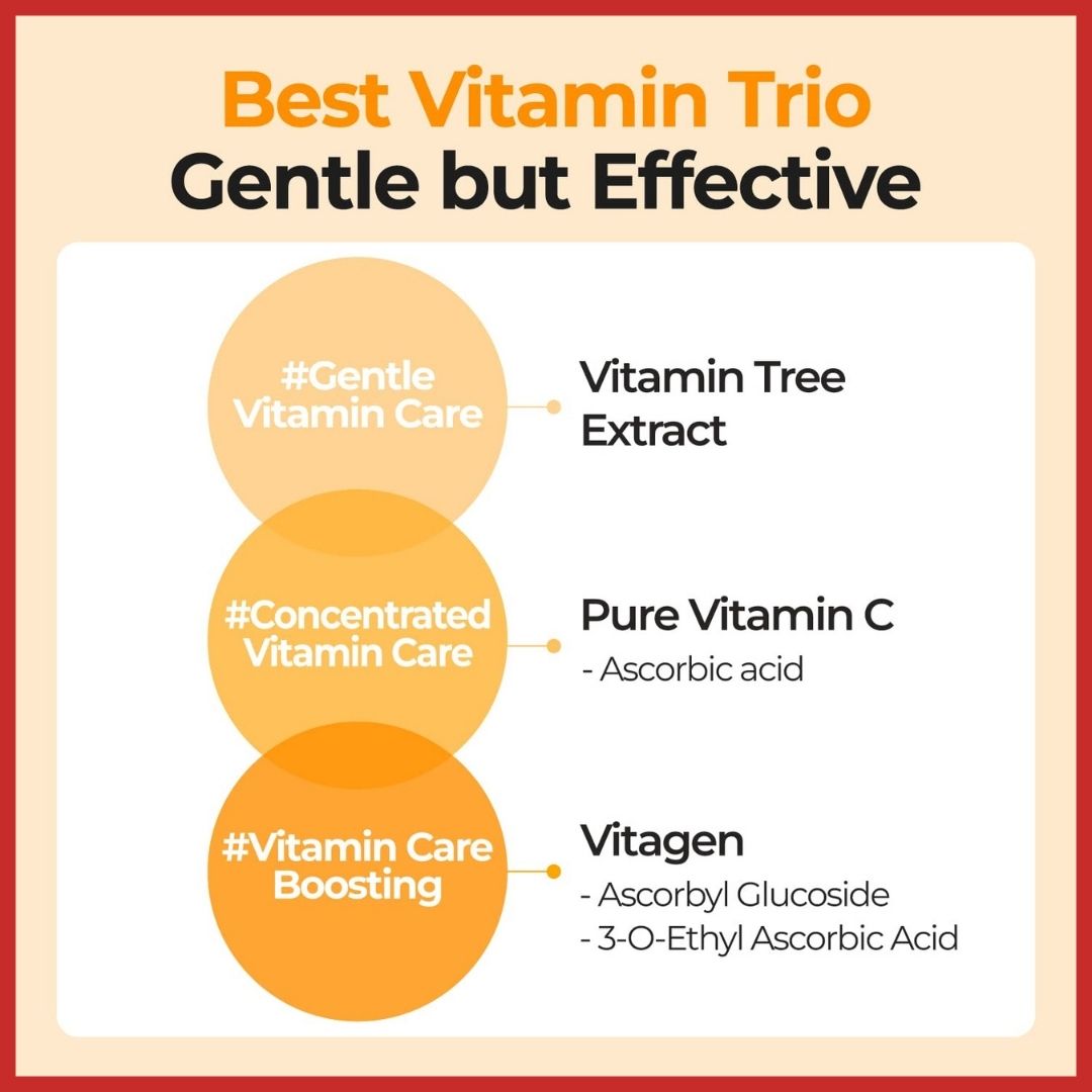 Hippophae Rhamnoides Extract, Butylene Glycol, Methyl Gluceth-20, Dipropylene Glycol, Glycerin, 1,2-Hexanediol, Niacinamide, Melia Azadirachta Flower Extract, Ocimum Sanctum Leaf Extract, Melia Azadirachta Leaf Extract, Curcuma Longa (Turmeric) Root Extract, Corallina Officinalis Extract, Citrus Limon (Lemon) Peel Oil, Citrus Aurantium Dulcis (Orange) Peel Oil, Citrus Aurantifolia (Lime) Oil, Polygonum Cuspidatum Root Extract, Scutellaria Baicalensis Root Extract, Camellia Sinensis Leaf Extract, Glycyrrhiza Glabra (Licorice) Root Extract, Chamomilla Recutita (Matricaria) Flower Extract, Rosmarinus Officinalis (Rosemary) Leaf Extract, Centella Asiatica Extract, Ascorbyl Glucoside, Ascorbic Acid, 3-O-Ethyl Ascorbic Acid, Panthenol, Sodium Hyaluronate, Dipotassium Glycyrrhizate, Glycereth-26, Ammonium Acryloyldimethyltaurate/VP Copolymer, Polyglyceryl-10 Laurate, Carbomer, Allantoin, Tromethamine, Purified Water, Hydrolyzed Jojoba Esters, Disodium EDTA, Citral, Limonene